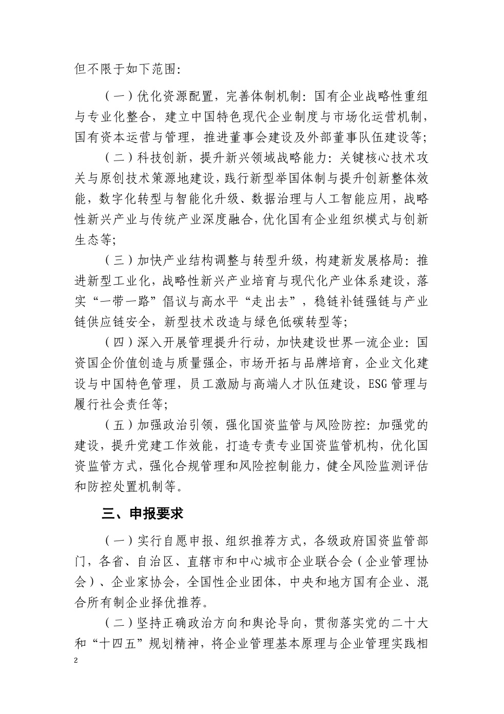 (二)堅(jiān)持正確政治方向和輿論導(dǎo)向,貫徹落實(shí)黨的二十大和“十四五”規(guī)劃精神,將企業(yè)管理基本原理與企業(yè)管理實(shí)踐相結(jié)合,對(duì)國(guó)資國(guó)企改革創(chuàng)新成果進(jìn)行系統(tǒng)的總結(jié)提煉,形成具有科學(xué)性、創(chuàng)新性、示范性和借鑒意義的典型樣本。