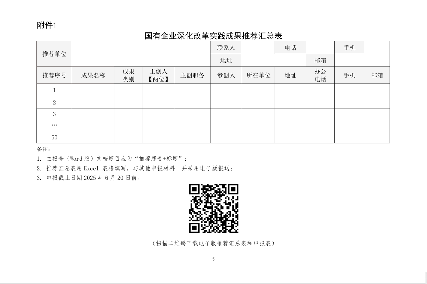 (掃碼下載2025年國有企業(yè)深化改革實踐成果推薦活動通知、推薦匯總表、申報表)