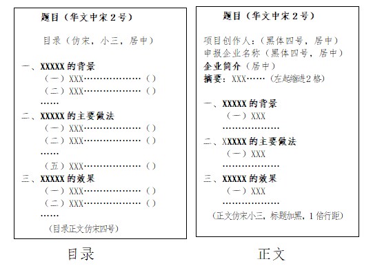 (四)文本標題華文中宋2號,內(nèi)文仿宋小3號;版式要求如下圖: